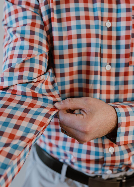 JD Buck Charcoal Navy Gingham No Tuck Sleeve Shirt