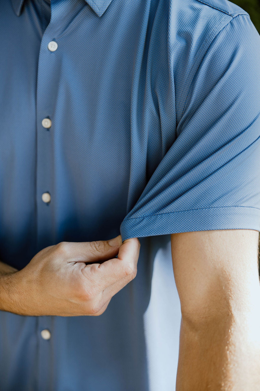 Introducing our JD Buck Clear Blue Textured Trim Cut Short Sleeve Shirt. Made with a Nylon/Spandex blend for ultimate stretch and comfort, this shirt features a classic, wrinkle-resistant style that is best worn untucked. It is not only machine washable, but moisture-wicking as well for easy care. With a relaxed fit that moves with you, this shirt is perfect for work or any event you want to look your best, without sacrificing comfort for style.