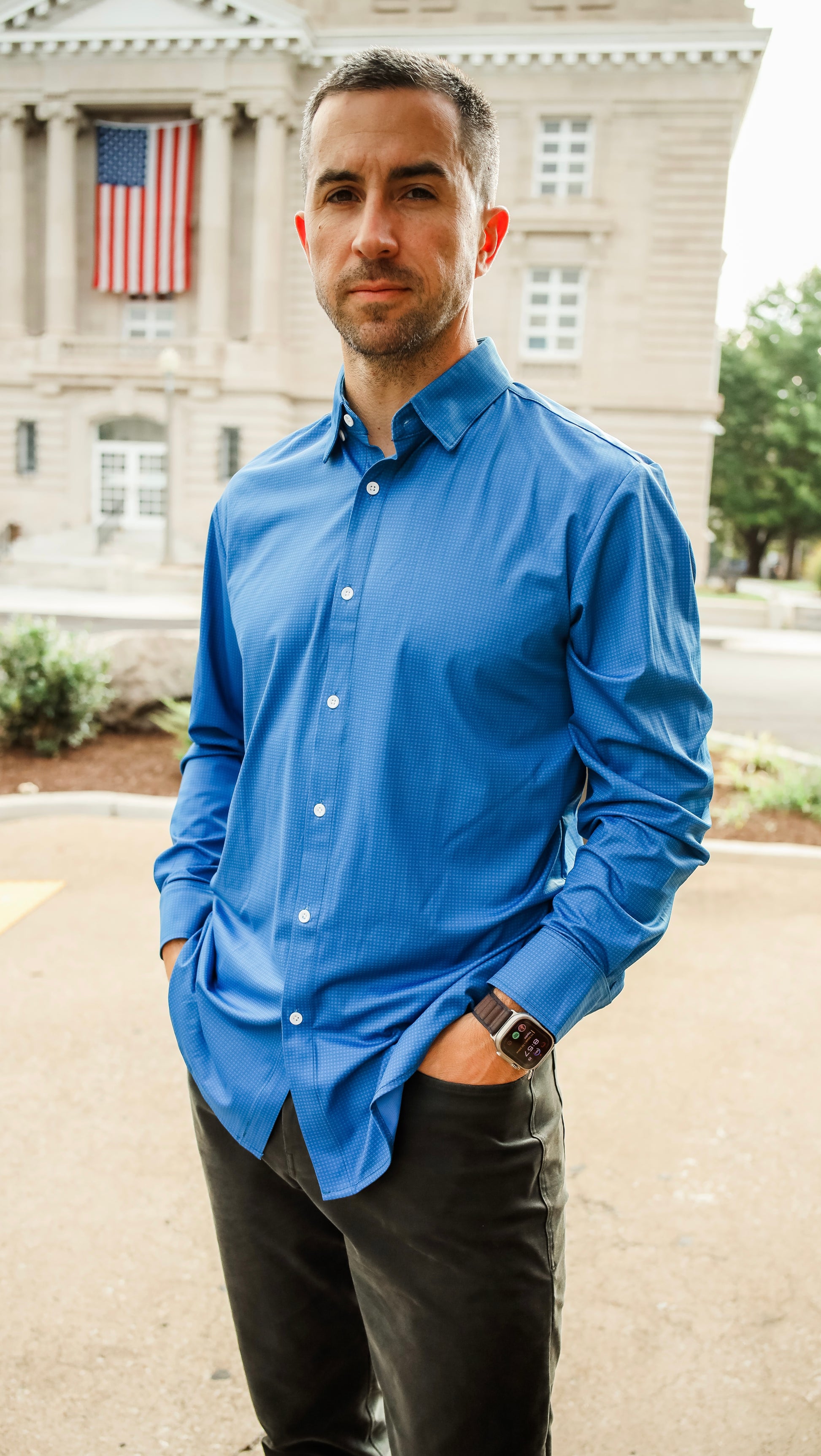 Introducing our JD Buck Ocean Dot Long Sleeve Shirt. Made with a Poly/Spandex blend for ultimate stretch and comfort, this shirt features a light blue and white square-pattern, wrinkle-resistant style that is not only machine washable, but moisture-wicking as well for easy care. With a relaxed fit that moves with you, this shirt is perfect for work or any event you want to look your best, without sacrificing comfort for style.